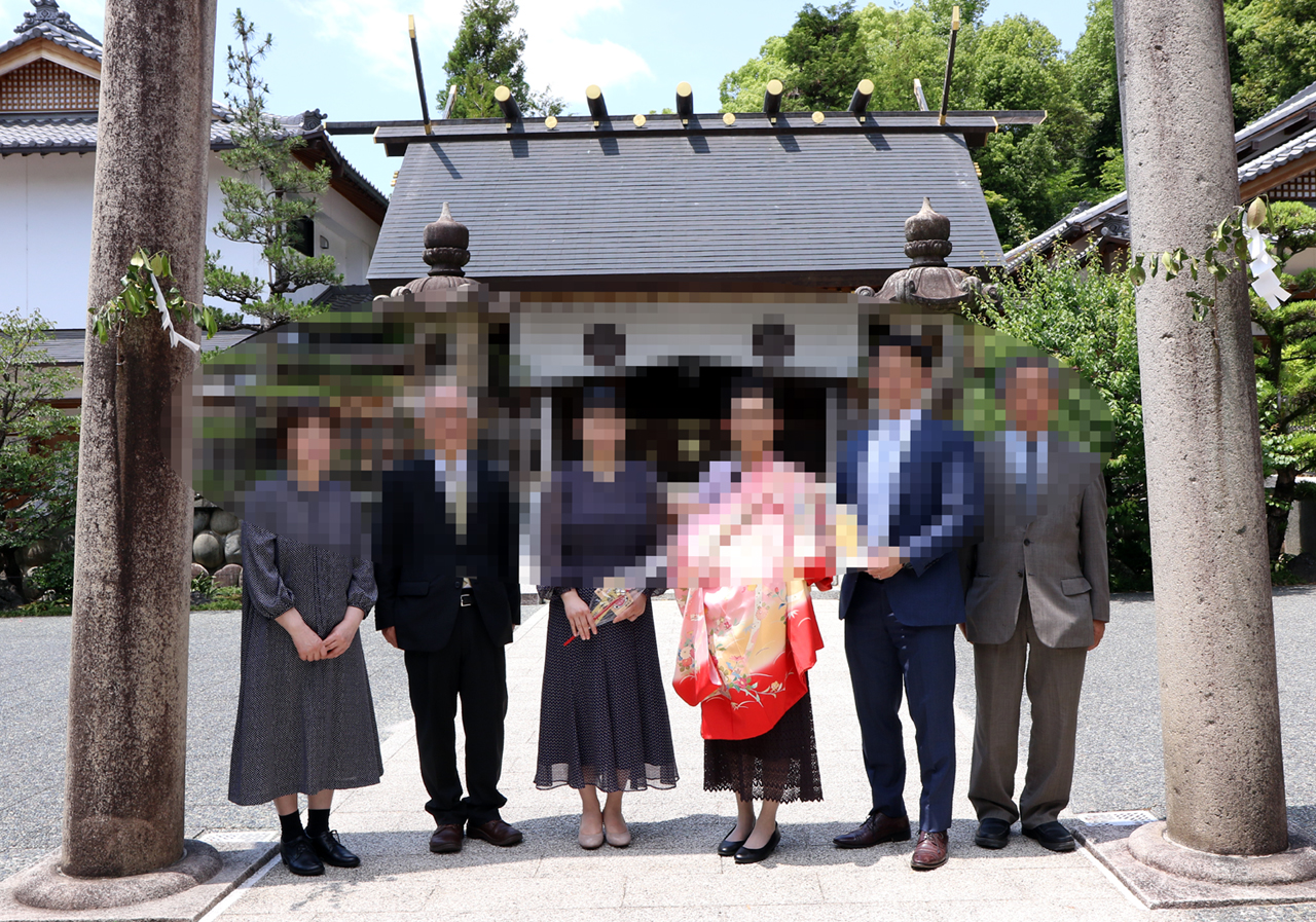 塩竃神社での手続御祈祷の申し込み時 写真撮影の申し込みもして下さい。撮影 フォトスペースシズ 052-834-0084